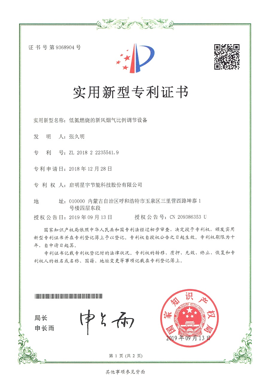 低氮燃燒的新風煙氣比例調節設備實用新型專利