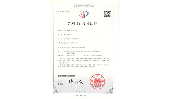五暖趨零排放設備外觀設計專利證書