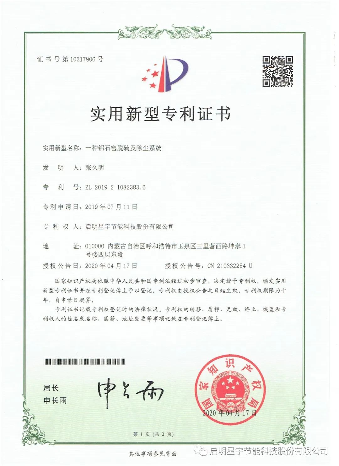 新年巨著,啟明星宇節能科技股份有限公司《工業廢氣零排放技術研究》科研論文在《中國科技人才》期刊成功發表