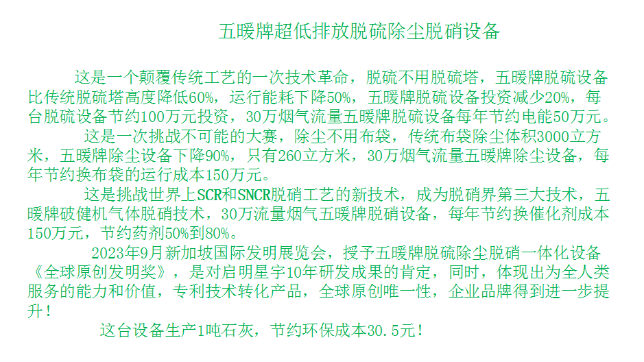 啟明星宇,五暖牌超低排放脫硫除塵脫硝設備,獲得新加坡國際發明展覽會《全球最佳原創發明獎》,同時獲得,新加坡國際發明展覽會雙金獎
